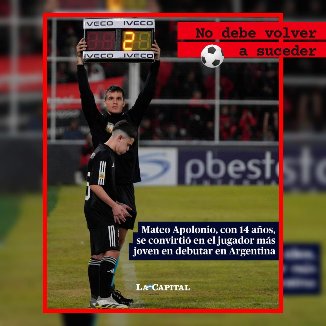 Mateo Apolonio, de 14 años y 29 días, entró en el final del partido entre Riestra y Newell’s y se convirtió en el jugador más joven en debutar en la Primera División del fútbol argentino. 💎