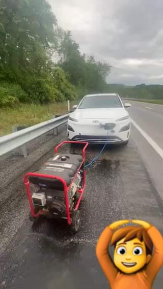 VA A PROVOCAR INFARTOS ❤️‍🩹 «Un auto eléctrico se queda varado en medio de la carretera y el que lo salva, lo hace con un generador de combustible diesel. Esto le dará un infarto a los progres woke ‘eco friendly’. 🤣 Simplemente cine puro. 🚬», posteó 📲 Eduardo Menoni.