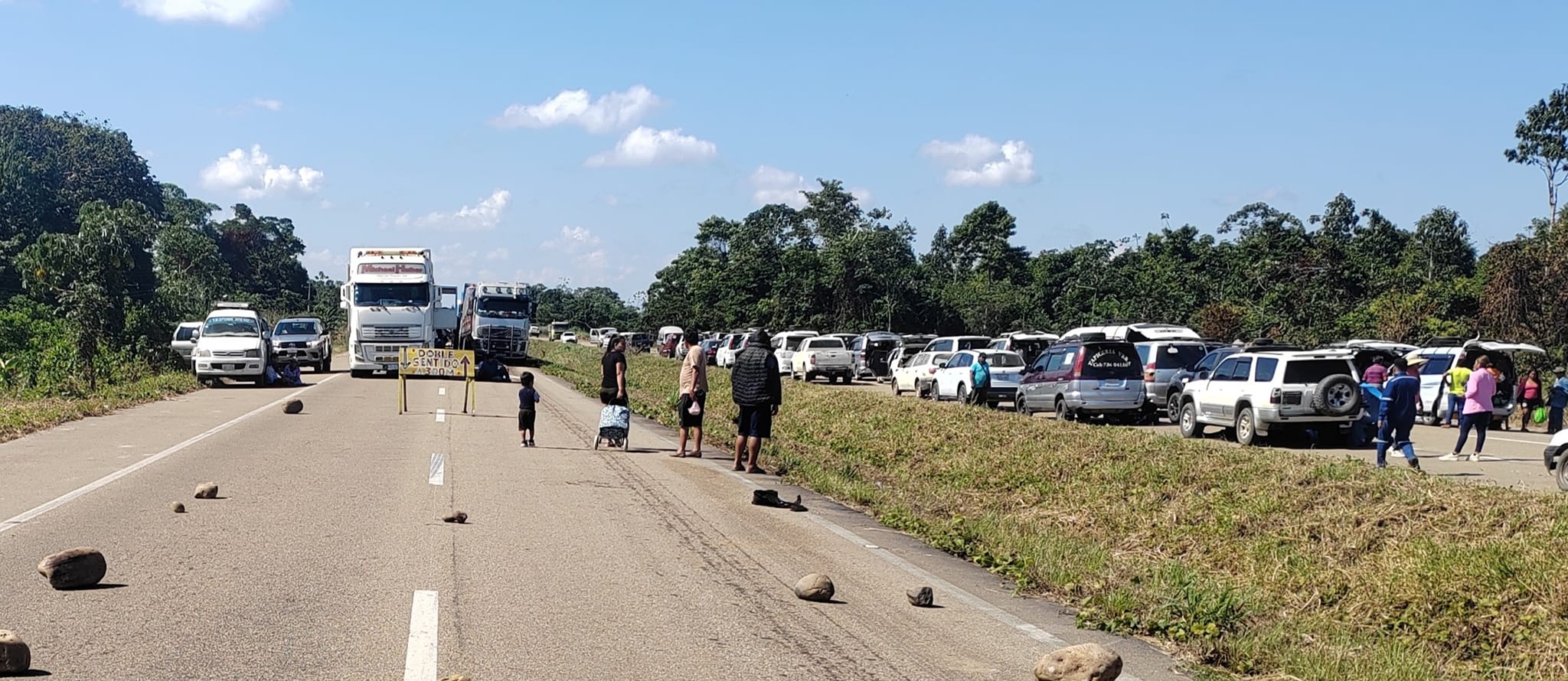 Ciento de camiones están varados por bloqueo en el ingreso a Campo Víbora, km 50 Santa Cruz – Cochabamba. Cientos de …