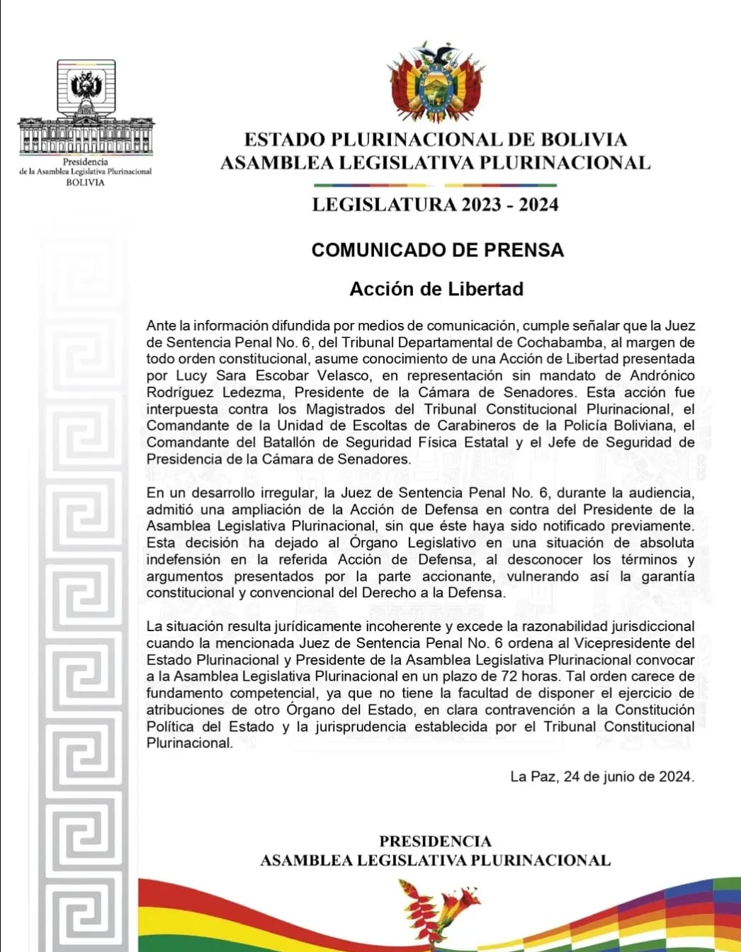 Vicepresidencia rechaza acción de libertad de Andronico y descarta convocar a sesión por orden judicialCategorías NoticiasEtiquetas , Detrás de la Verdad, DTV, Facebook 24/06/2024 Vicepresidencia rechaza acción de libertad de Andronico y descarta convocar a sesión por orden judicial [vid_embed] => Recibir por Whatsapp las noticias destacadas Fuente: DTV