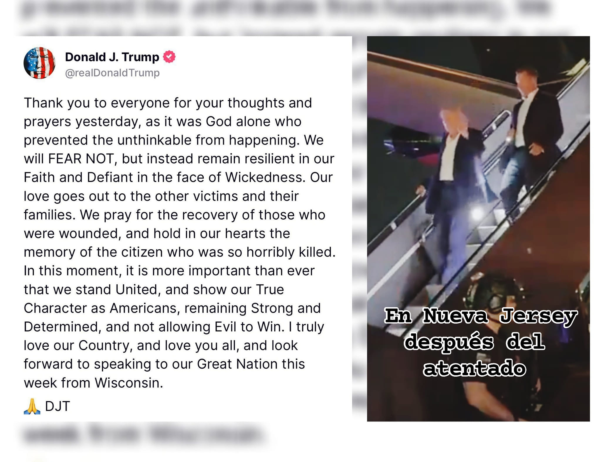 «Gracias a todos por sus pensamientos y oraciones de ayer, ya que fue solo Dios quien evitó que sucediera lo impensable. NO TEMEMOS MIEDO, sino que permaneceremos resilientes en nuestra Fé y desafiantes ante la Maldad.