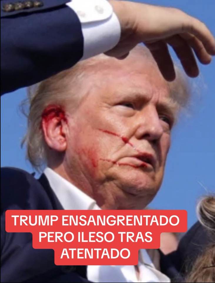 Desde un techo un hombre le disparó. El tiro pasó cerca de Trump. Impactó a alguien que estaba próximo y su sangre llegó a la oreja y una mejilla de Trump.
