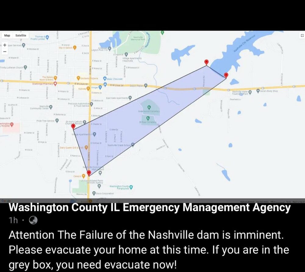 Las autoridades han ordenado la evacuación inmediata de partes de Nashville, Illinois, debido a la “inminente” falla de una represa tras una advertencia de inundaciones repentinas emitida por el Servicio Meteorológico Nacional. https://t.co/5MjcS0wGVy