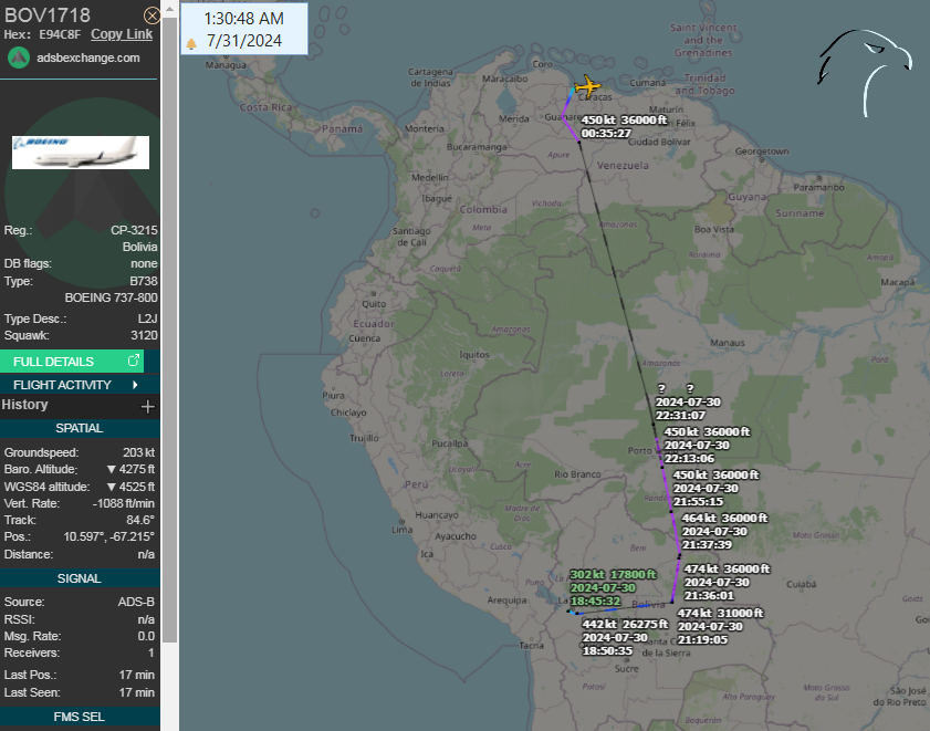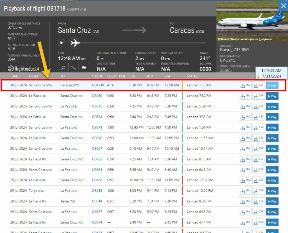 El vuelo Santa Cruz-Caracas no es de línea regular y sigue rutas inusuales. Se informa que continúan… https://t.co/Ht5pTius2O https://t.co/tSEMikkQBj