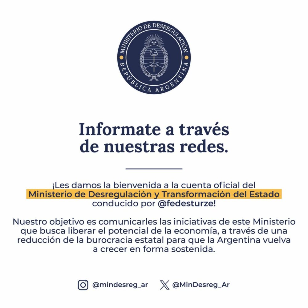 Pueden seguirlos en @MinDesreg_Ar. https://t.co/y2ha80VdNv