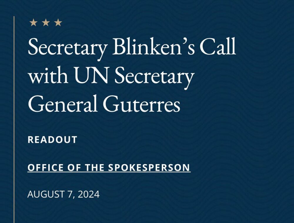 El Secretario de Estado de EE.UU., Antony J. Blinken, conversó con el Secretario General de la ONU, Antonio Guterres, para apoyar un proceso inclusivo liderado por venezolanos hacia el restablecimiento de normas democráticas.