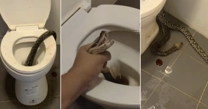 Un hombre en Tailandia vivió una experiencia aterradora cuando una serpiente pitón de 3,6 metros apareció en el inodoro de su baño y lo mordió en los testículos.