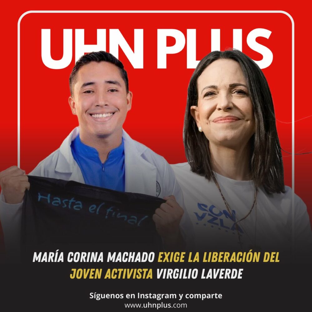 María Corina Machado denuncia que hoy se cumple una semana de la arbitraria detención de Virgilio Laverde, un joven brillante del estado Bolívar, próximo a graduarse como médico en la UDO.