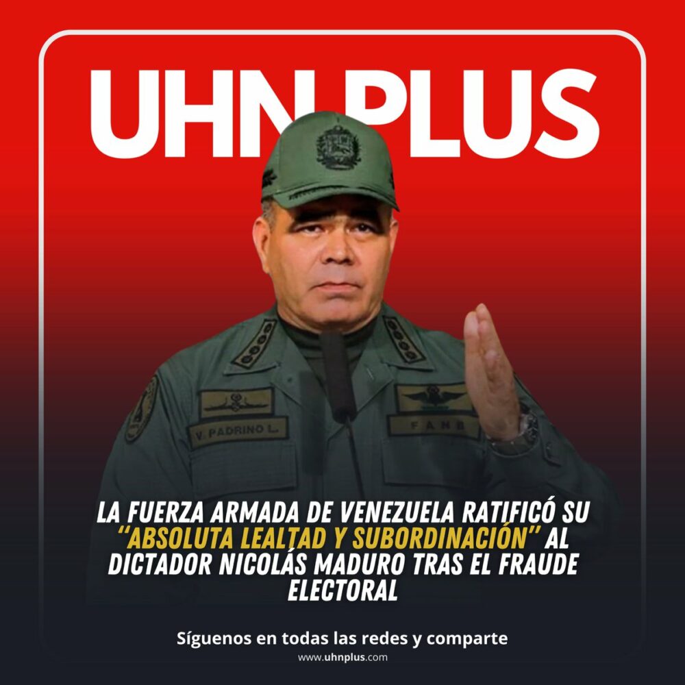 La Fuerza Armada de Venezuela ratificó este domingo su “absoluta lealtad y subordinación” al dictador Nicolás Maduro tras el fraude electoral.