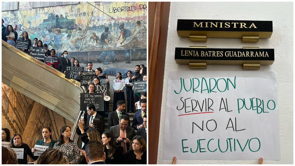 Trabajadores de la Suprema Corte de Justicia de la Nación (SCJN) se manifestaron pacíficamente en los pasillos del edificio, criticando la influencia de Lenia Batres y su presunta cercanía con el presidente López Obrador.
