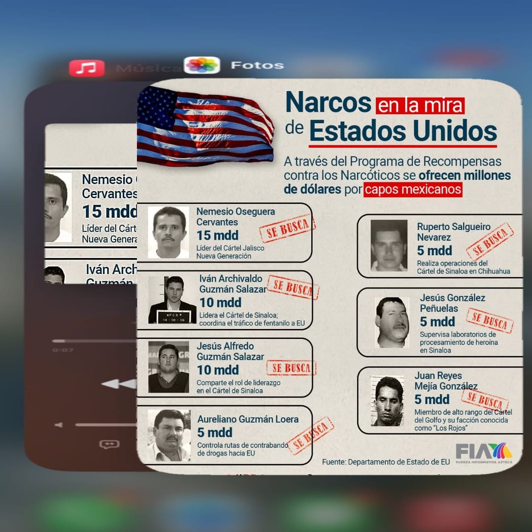 Los capos mexicanos son buscados incansablemente por las autoridades estadounidenses y por medio del Programa de Recompensas contra los Narcóticos ofrecen millones de dólares 💸 por ellos.