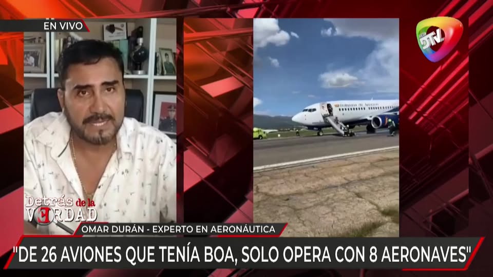 #Envivo \n\u201cEn Boa usan repuestos de hace m\u00e1s de 25 a\u00f1os, continuaran los incidentes\u201d \n\nTras el incendio de uno de los motores de un avi\u00f3n de BOA antes de despegar del aeropuerto de Cochabamba y que el hecho haya alarmado a los pasajeros que evacuaron la aeronave en medio de gritos, el experto en aeron\u00e1utica, Omar Duran aseguro que \u201cBoa no solo tiene un manejo inadecuado si no que esta en quiebra\u201d. \n\nAsegura que Boa usa repuestos de hace m\u00e1s de 25 a\u00f1os por lo que considera continuaran los incidentes en las aeronaves de Boa. \n\n\u201cCualquier rato podemos perder certificaciones internacionales (\u2026) Boa es un fracaso para bolivianos (\u2026) manejo de Boa es p\u00e9simo\», dijo. \n\nDenuncia que hay cinco personas que se est\u00e1n enriqueciendo en Boa con la compra de repuestos para aeronaves, \u201chay que investigar actos irregulares en Boa (\u2026) se enriquecen con la falta de cuidado de las aeronaves (\u2026) falta control al manejo de recursos de Boa\», dijo. \n#DTV\n#Nacional»,»delight_ranges»:[],»image_ranges»:[],»inline_style_ranges»:[],»aggregated_ranges»:[],»ranges»:[{«entity»:{«__typename»:»Hashtag»,»__isEntity»:»Hashtag»,»url»:»https:\/\/www.facebook.com\/hashtag\/envivo?__eep__=6″,»mobileUrl»:»https:\/\/m.facebook.com\/hashtag\/envivo»,»__isNode»:»Hashtag»,»id»:»610209495671846