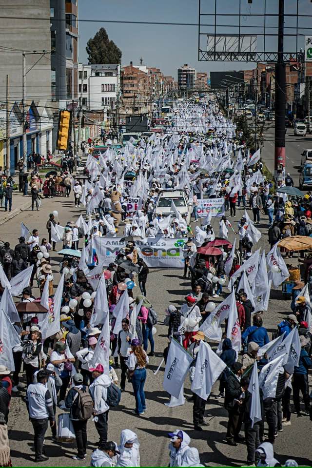 La fuerza que mostró Eva Copa en El Alto para lanzar su partido Morena. Ya tiene personería jurídica del Tribunal Supremo Electoral. Y ningún impedimento para participar en las elecciones de agosto. Aún no han dicho a quién postularán a la presidencia.
