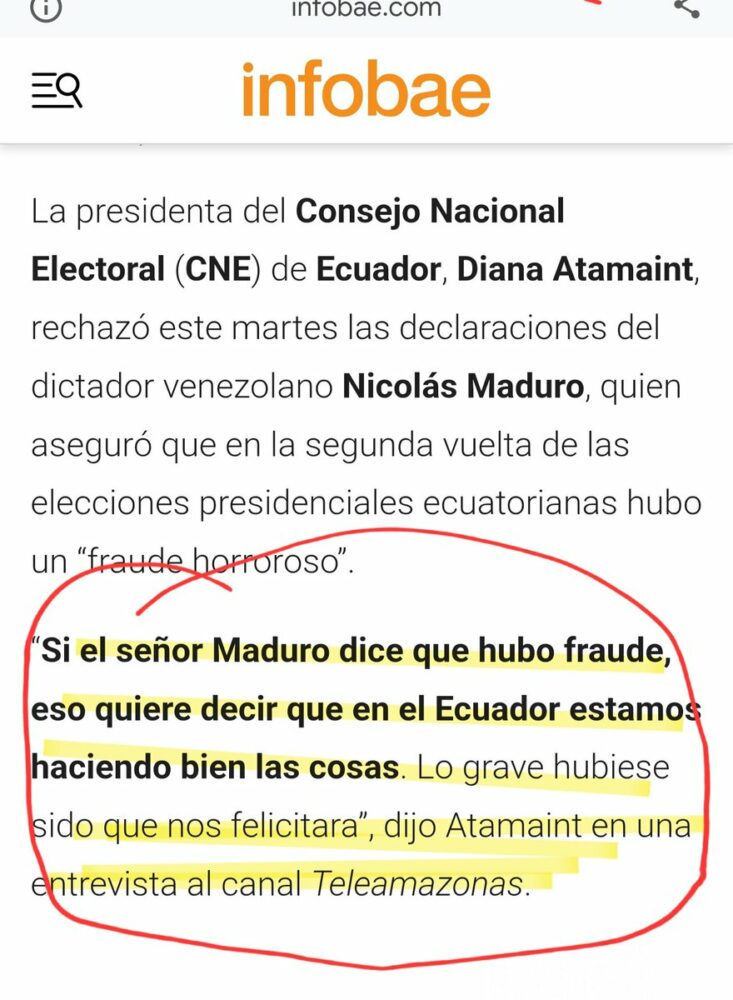 Contundente respuesta de @DianaAtamaint-@cnegobec a Maduro es extensiva a Evo Morales. Si los fraudulentos critican triunfo aplastante de @DanielNoboaOk, es pq en Ecuador «hicieron bien las cosas».