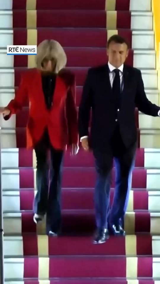 Esta lección de modales maritales Macron la dio hoy al llegar a Vietnam. La primera persona en verla fue la auxiliar de vuelo, como se ve en el video.