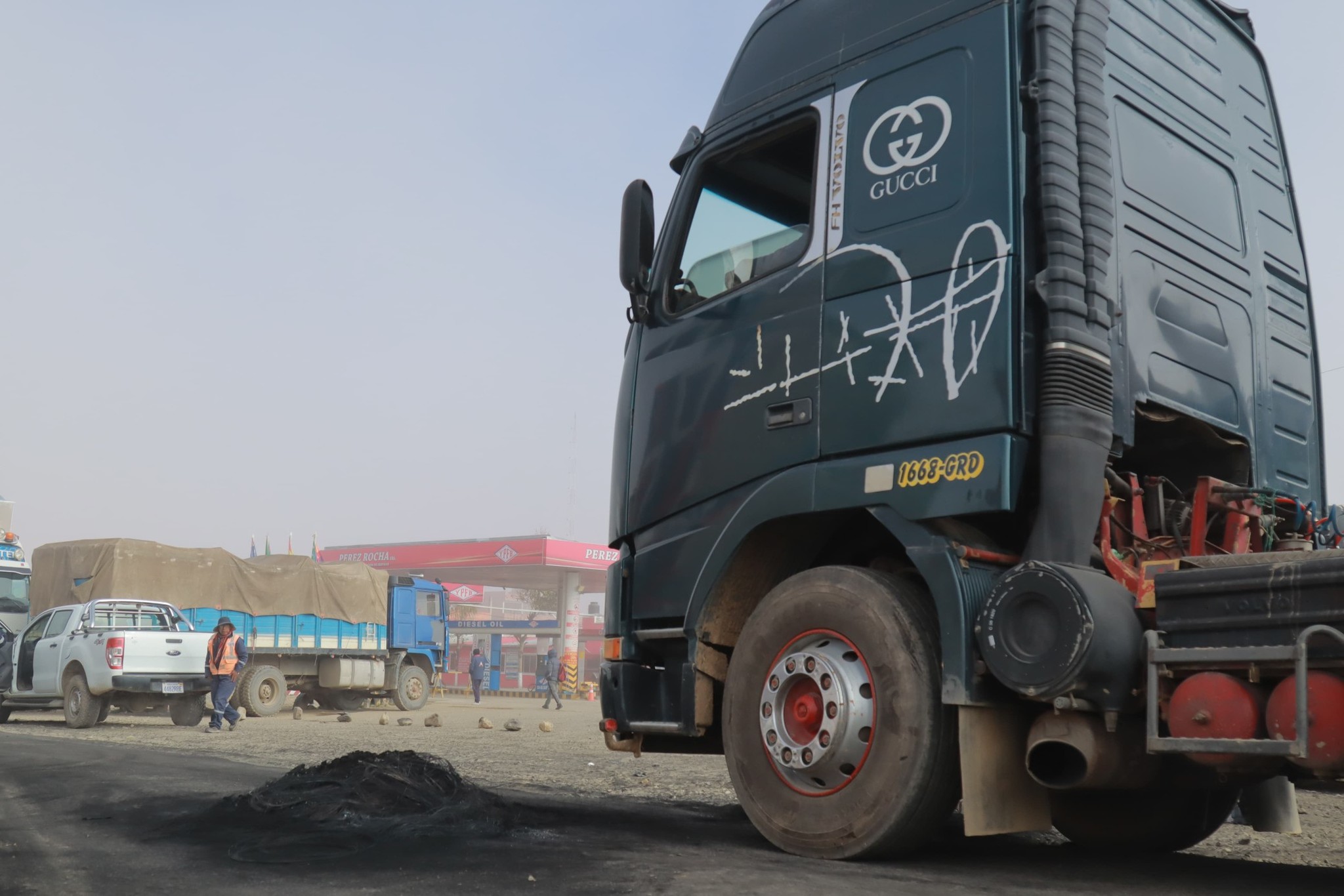Transportistas del sector pesado instalaron un bloqueo en la carretera hacia Laja este jueves, denunciando una severa escasez de combustible. Aseguran que deben esperar varios días para abastecerse de diésel y advierten que mantendrán la medida de presión hasta recibir una respuesta de las autoridades.