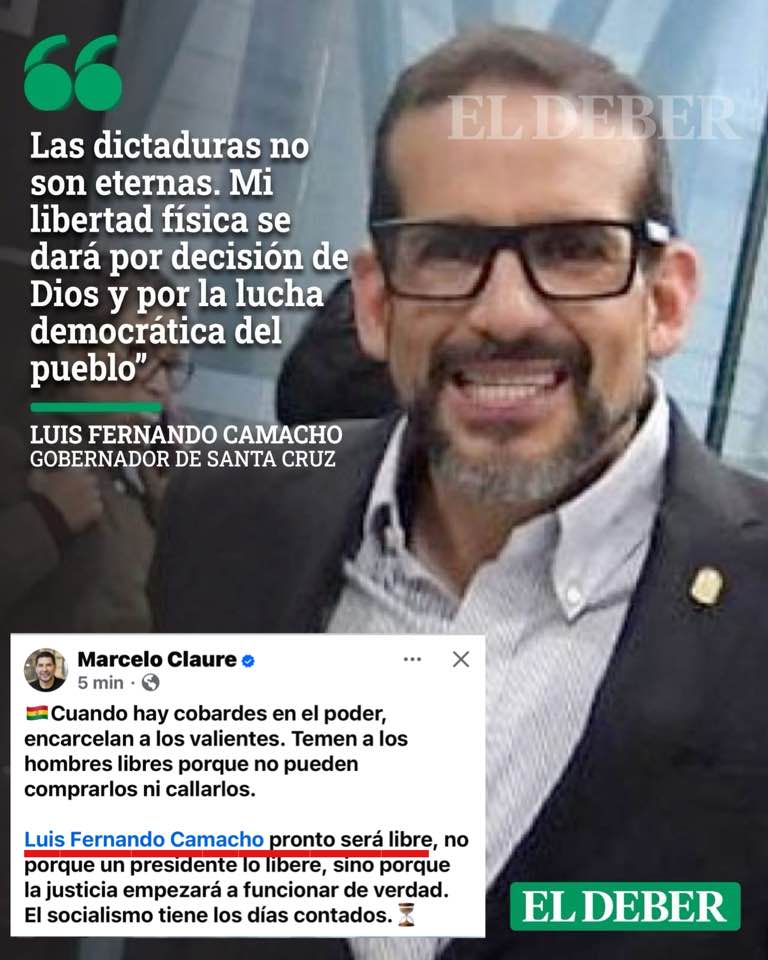 “Luis Fernando Camacho pronto será libre”. El mensaje de aliento de Marcelo Claure para el gobernador de Santa Cruz.