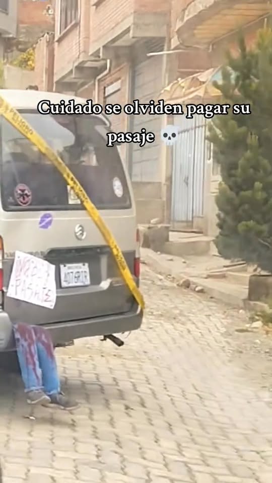 Algunos choferes alteños sorprendieron a sus pasajeros con originales decoraciones en sus vehículos. Uno de los más llamativos fue un trufi adornado con piernas falsas y manchas rojas, lo que desató risas y fotos entre los transeúntes.