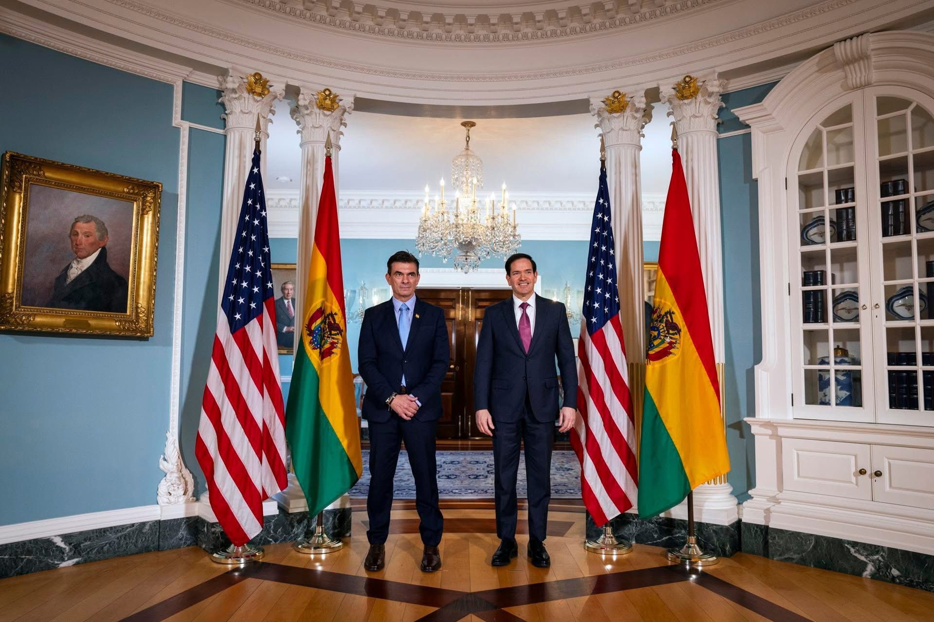 Las fotos más importantes de Rodrigo, hasta ahora. Con el tercer hombre más poderoso del país más poderoso del mundo. Con Marco Rubio, secretario de Estado (canciller) de EEUU.