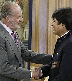 Ay Evo, Evo, Evo, Evo. El hombre se cansó de rendirles pleitesía a los reyes de España, a Juan Carlos y a Felipe, se cansó de abrazarlos y sonreírles.