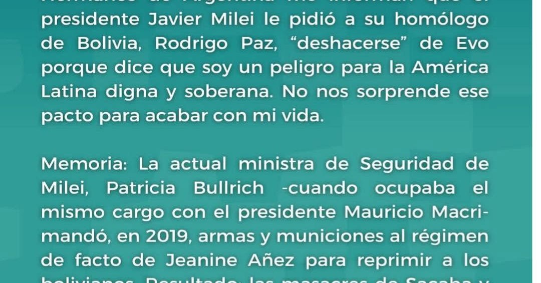 Evo está asustado. Tiene miedo de que entre Milei y Rodrigo lo atrapen, lo lleven ante la justicia y lo hagan pagar por sus debilidades y culpas.