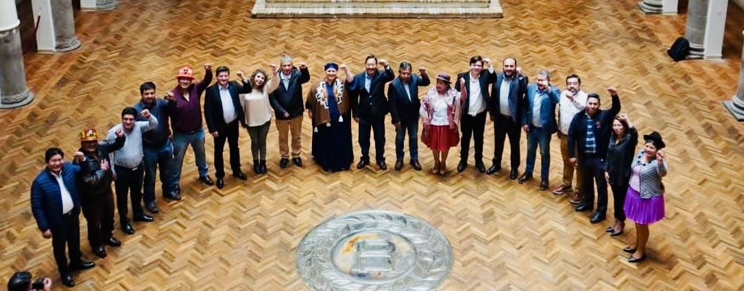 Se van dando la cara, sin esconderse. Luis Arce y sus ministros posan por última vez, tras su última reunión de gabinete.