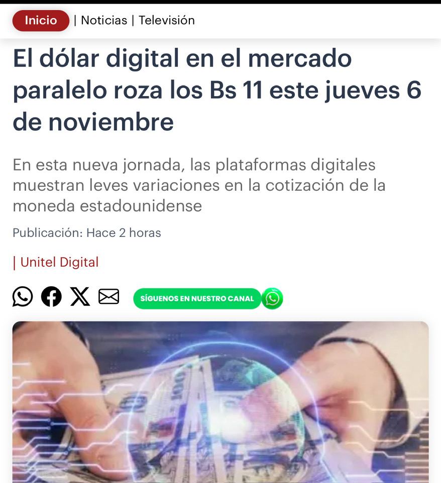 El dólar hoy, jueves 6, rozando los Bs 11. Pensar que llegó a 20. Dicen que nunca más volverá a Bs 6.96.