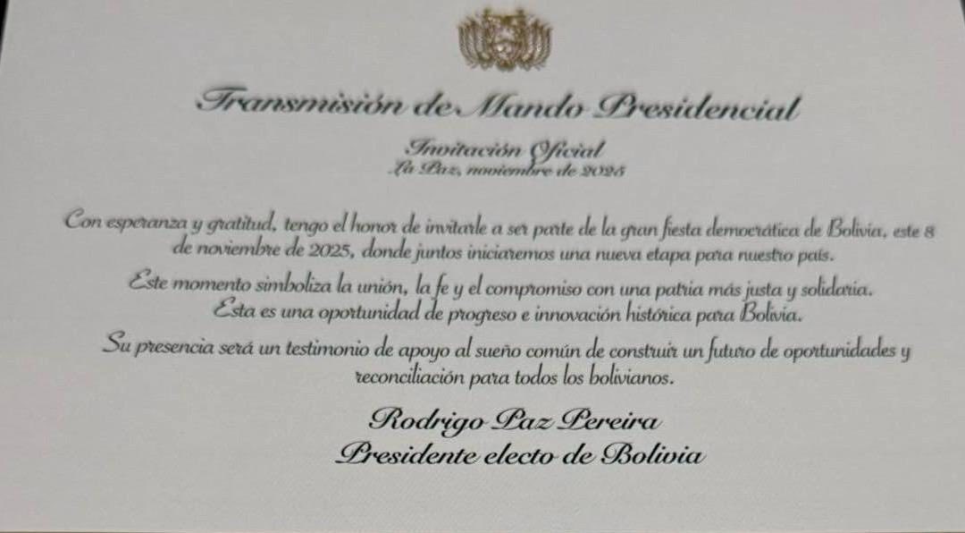 Jeanine Áñez ya recibió su invitación. El sábado volverá a la Asamblea Legislativa. Asistirá al juramento de Rodrigo Paz y Edman Lara como nuevos presidente y vicepresidentes de Bolivia.