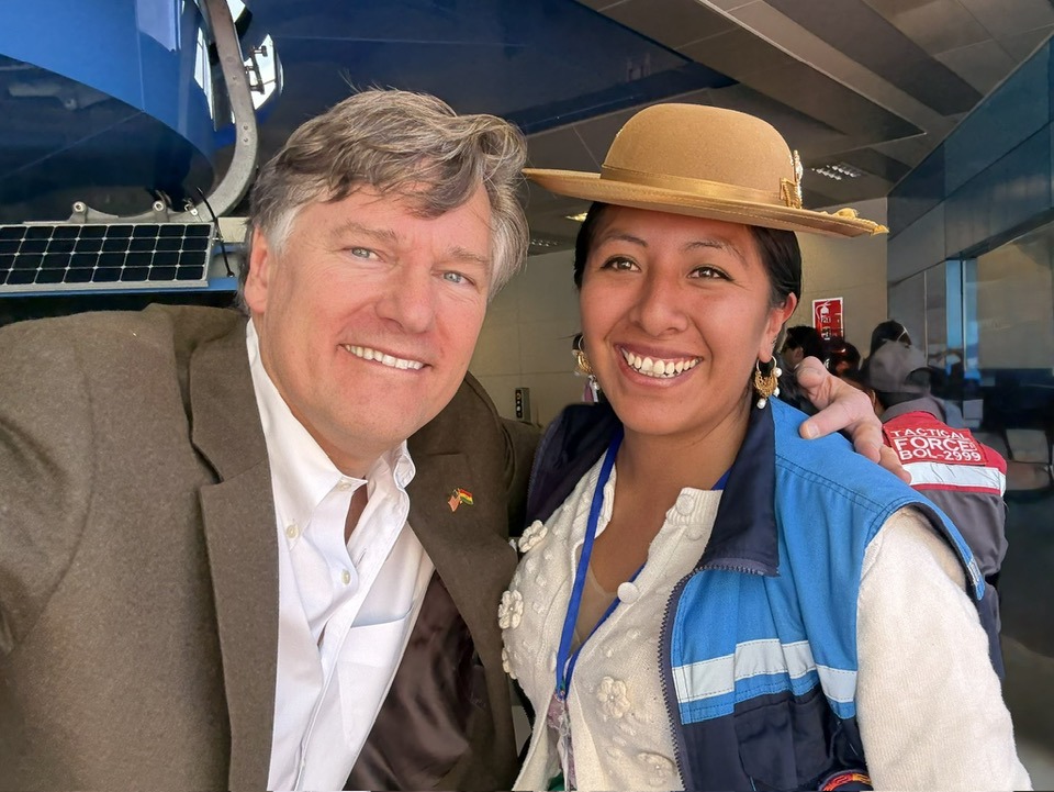 Esta suma de colores. Esta diversidad. Esos ojos azules de él y esos reilones ojos negros de ella. El vicecanciller de EEUU llegó ayer en su avión privado. Gritó “Viva Bolivia” y los bolivianos empezamos a ver el reencuentro EEUU-Bolivia.