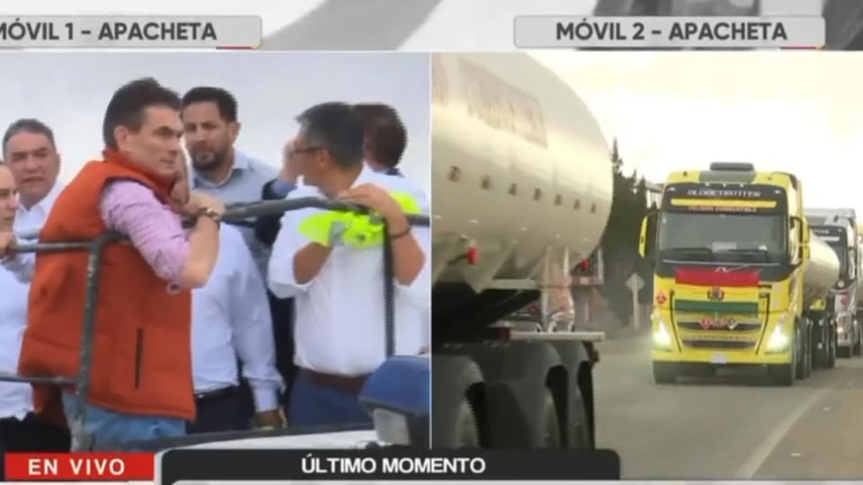 El presidente Rodrigo Paz lideró este domingo una caravana para recibir las cisternas que llegaron con combustible hasta la planta de Sencata, en la ciudad de El Alto. Acompañado de sus ministros del área, el mandatario partió desde la sede de Gobierno rumbo a la planta, en una muestra de respaldo y coordinación con los sectores encargados del abastecimiento energético del país.