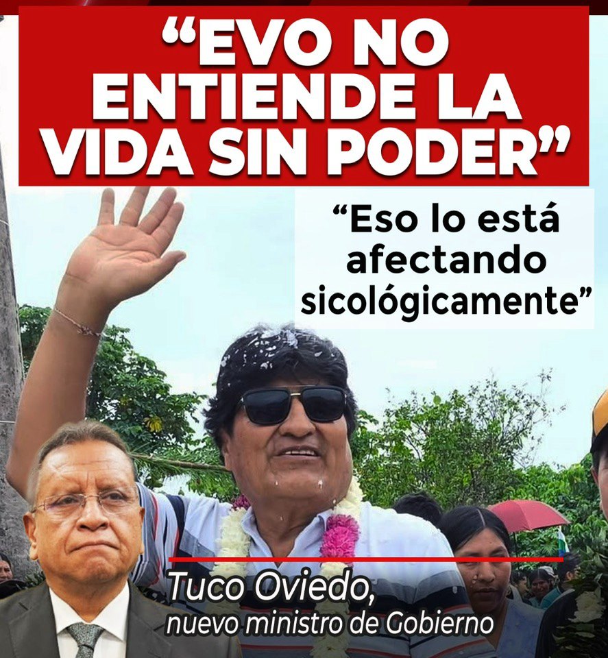 “Evo está psicológicamente afectado”. “Y eso es porque no entiende la vida sin poder”. “Por eso intenta desestabilizar desde el primer día al presidente Rodrigo Paz, pero lo hace desde su aislamiento y su debilidad cada vez mayor”.
