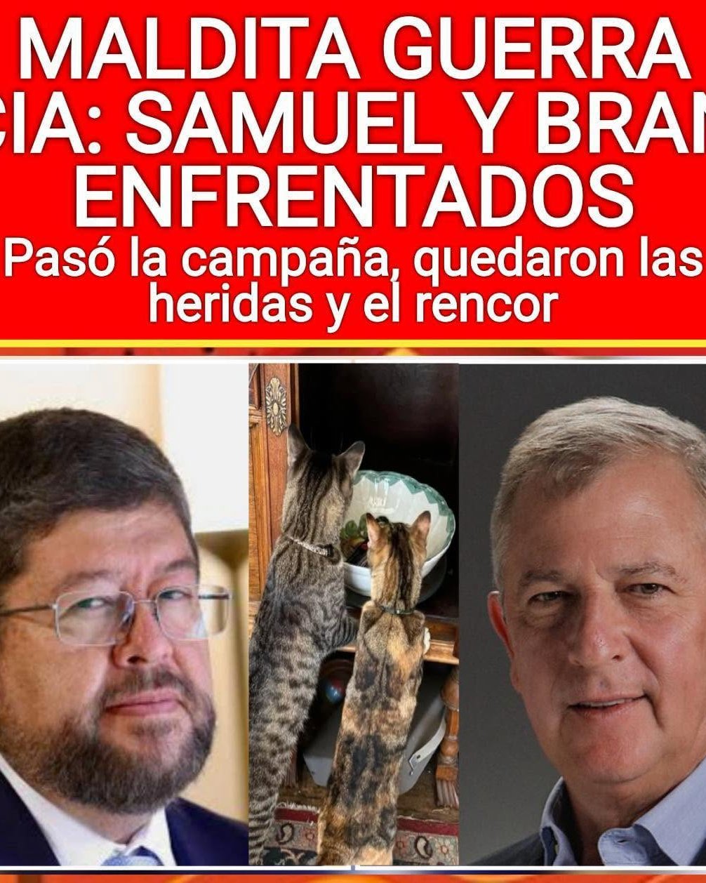 Y Branko le brinca. A Samuel. Y le dice que es Samuel el que puso a su gata a cuidar otra alacena. Ya no la de las tierras, sino la alacena del turismo. Branko denuncia que Samuel puso a alguien de su hotel, Los Tajibos, como ministra de Turismo. Y que desde el ministerio va a construir ventajas para su hotel. Y que no confía en que su ratón cuide el queso.