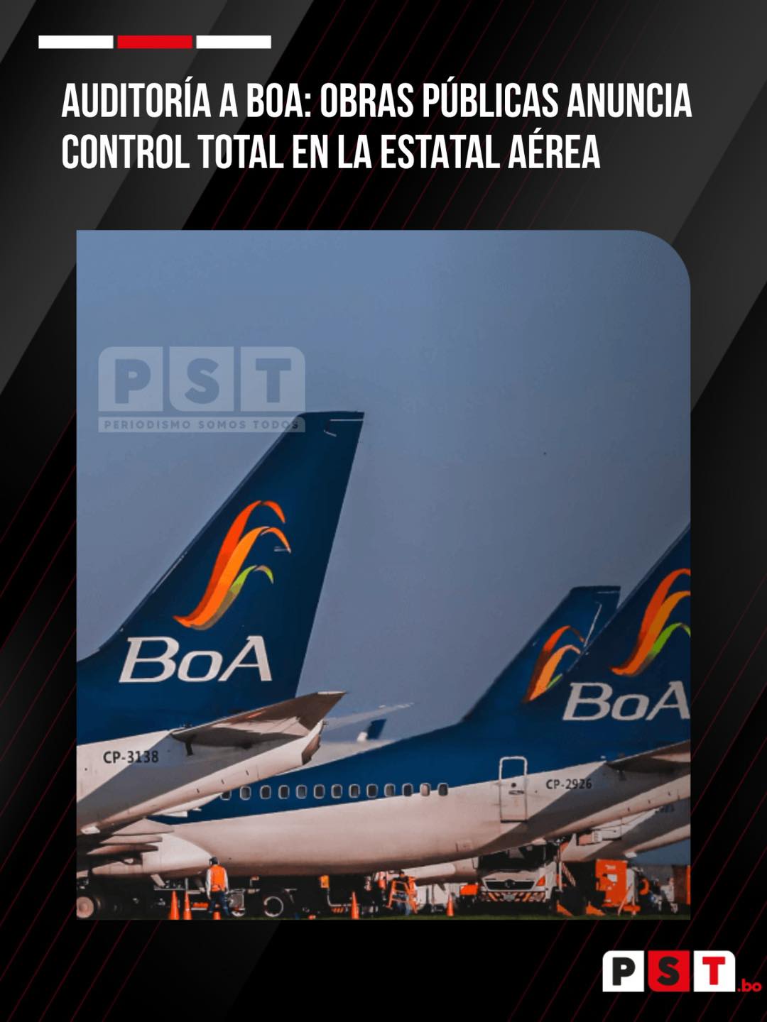 El Ministerio de Obras Públicas informó que iniciará una auditoría exhaustiva a Boliviana de Aviación (BoA) y advirtió que no se tolerarán irregularid…