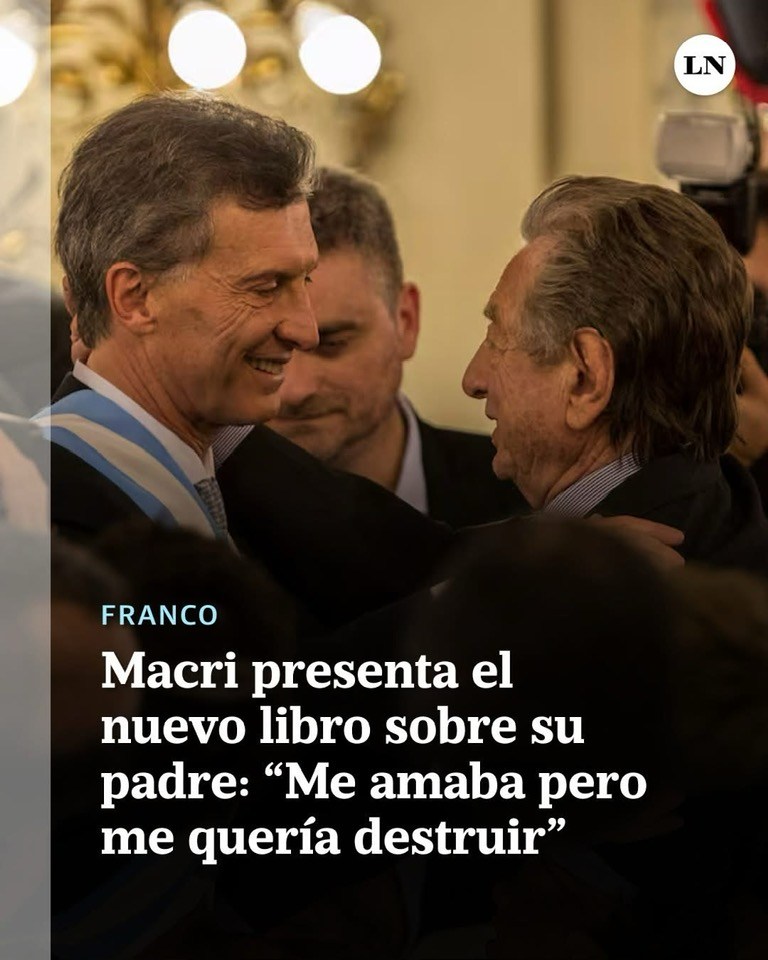 “Me amaba pero me quería destruir”. Qué título para un libro. Un hijo exitoso escribe sobre su padre exitoso. Ya quiero leer el libro de Mauricio Macri.
