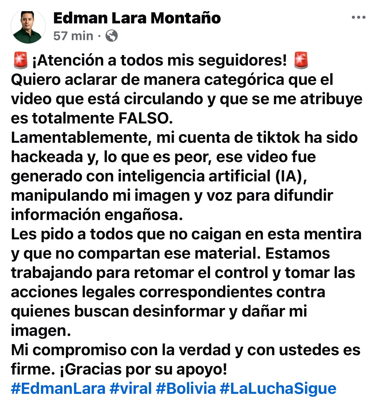 Edmand Lara niega la autenticidad de un video atribuido a él.