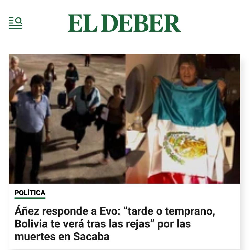 Evo acabará preso. Jeanine Áñez no lo duda. “Tarde o temprano Bolivia te verá tras las rejas”, le dice.