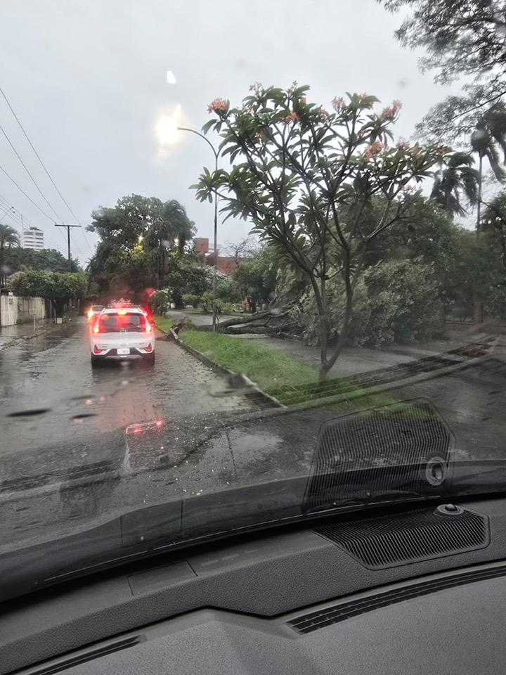 Árbol caído. Parque Urbano, Santa Cruz. Hay que caminar y conducir con cuidado. Vientos y lluvias marcan una jornada desafiante en todo el departamento.
