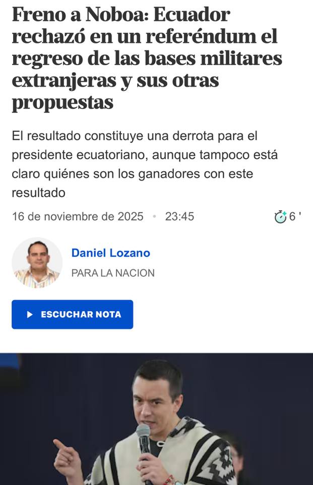 El 21F Bolivia le dijo NO a Evo. Ayer domingo Ecuador le dijo no a Noboa.