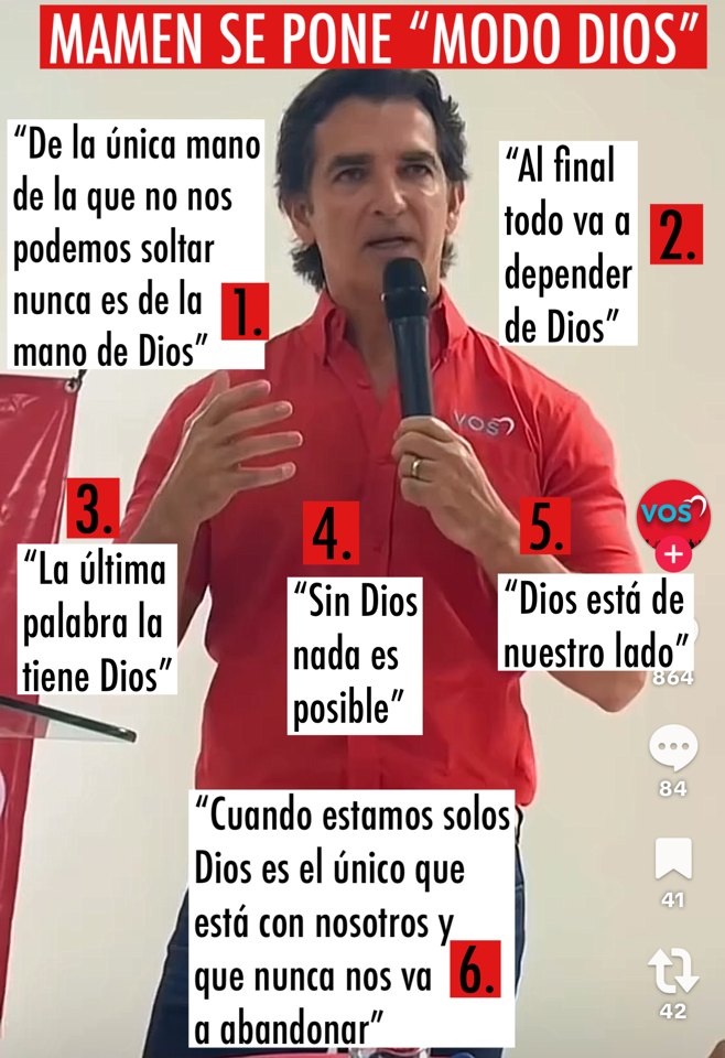 Sorpresa: Mamén se pone en “Modo Dios”. Y empieza a nombrar a Dios a cada instante. No lo hacía antes. ¿Cuándo cambia y decide empezar a nombrar a Dios? Al iniciar su campaña rumbo a la Alcaldía, este fin de semana.