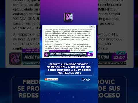 #Nacional | Freddy Alejandro Vidovic, ministro de Justicia, denuncia que la sentencia dictada en su contra en 2015 fue un proceso político irregular que violó sus derechos fundamentales y asegura que ejercerá su cargo conforme a la Constitución.