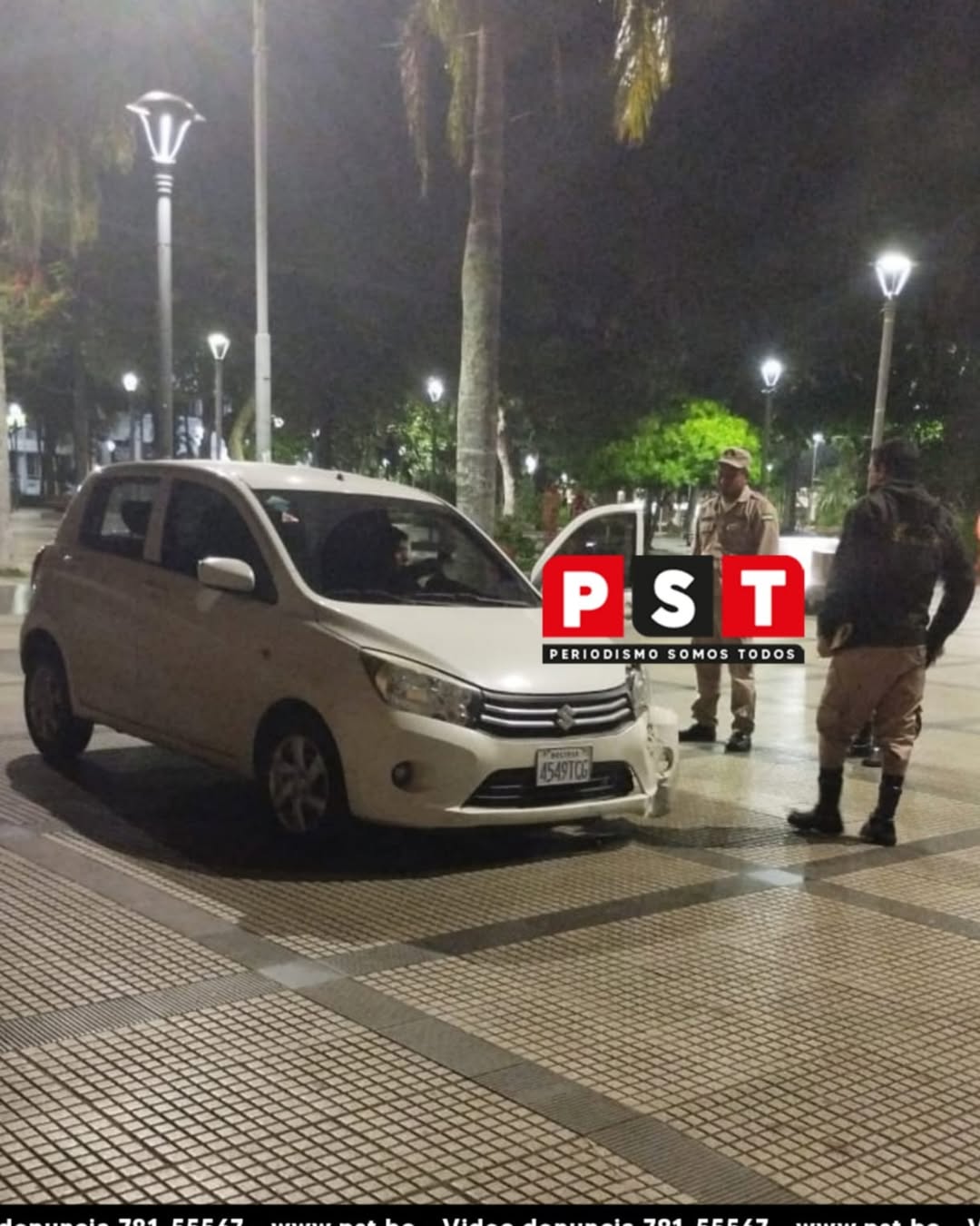 En la madrugada de hoy, un conductor en evidente estado de ebriedad irrumpió por media plaza 24 de Septiembre, poniendo en riesgo a quienes circulaban por la zona. El vehículo presentaba el parachoques delantero dañado y una rueda reventada, signos de que habría huido de un choque previo.