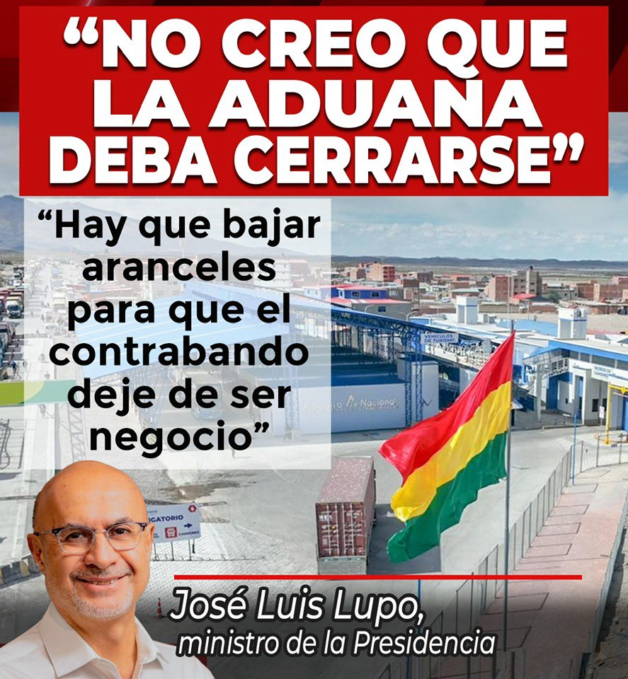 Posición personal de José Luis Lupo, ministro de la Presidencia. “No creo que la Aduana deba cerrarse”. Diferente a la propuesta electoral de Rodrigo y Edmand, que hablaba de “vamos a cerrar la Aduana”.