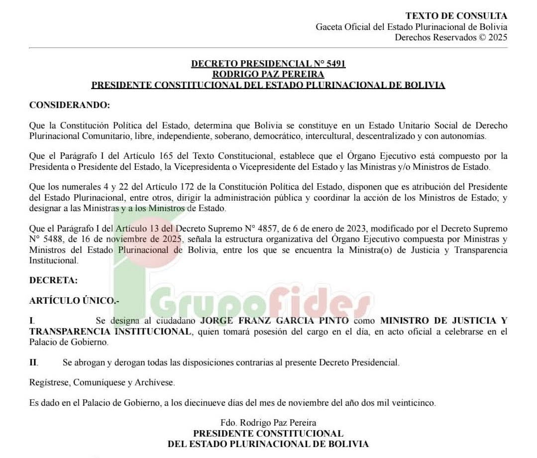 Rodrigo destituyó a Vidovic. Sin vueltas, con autoridad y decisión. Y posesionó a Jorge García Pinto como nuevo ministro de Justicia.