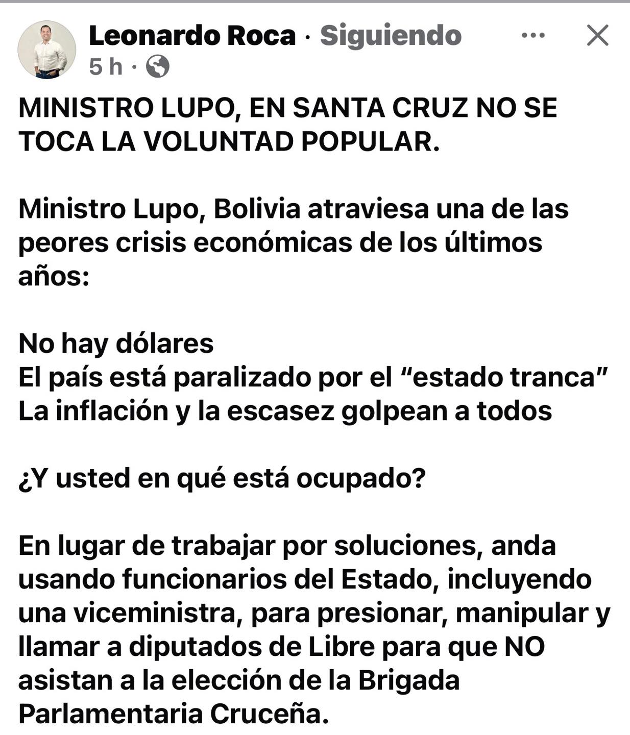 ROCA ARREMETE CONTRA LUPO EN REDES EN PLENA ANTESALA A LA ELECCIÓN DE LA BRIGADA PARLAMENTARIA…