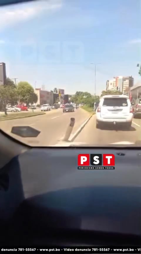 Parte de un tubo del alumbrado público, derribado tras un accidente de tránsito, quedó expuesto peligrosamente sobre uno de los carriles del segundo anillo, a la altura del canal Isuto, generando un alto riesgo para quienes circulan por la zona.