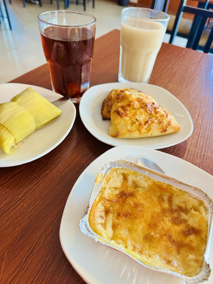 Siempre hay un espacio para algo rico. Estas son las mejores empanadas de arroz. De lejos. Crocantitas. Ricas. Quesudas. Más el mocochinchi. Y la chicha.