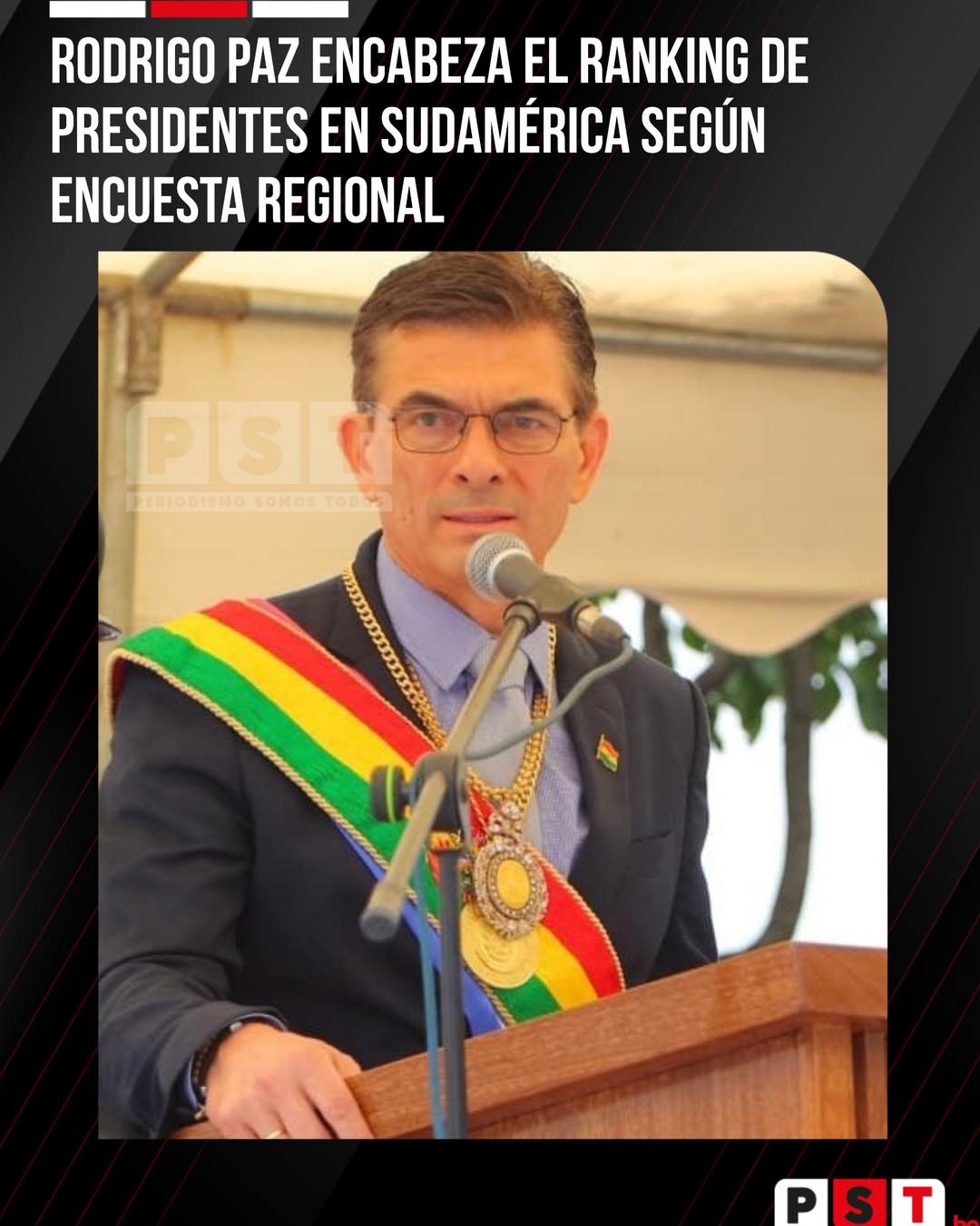Una medición de CB Consultora ubicó al presidente boliviano Rodrigo Paz como el mandatario con mayor imagen positiva de la región en noviembre de 2025, alcanzando un 51,7%. Al final del listado se encuentra Nicolás Maduro, con apenas 21,4%.