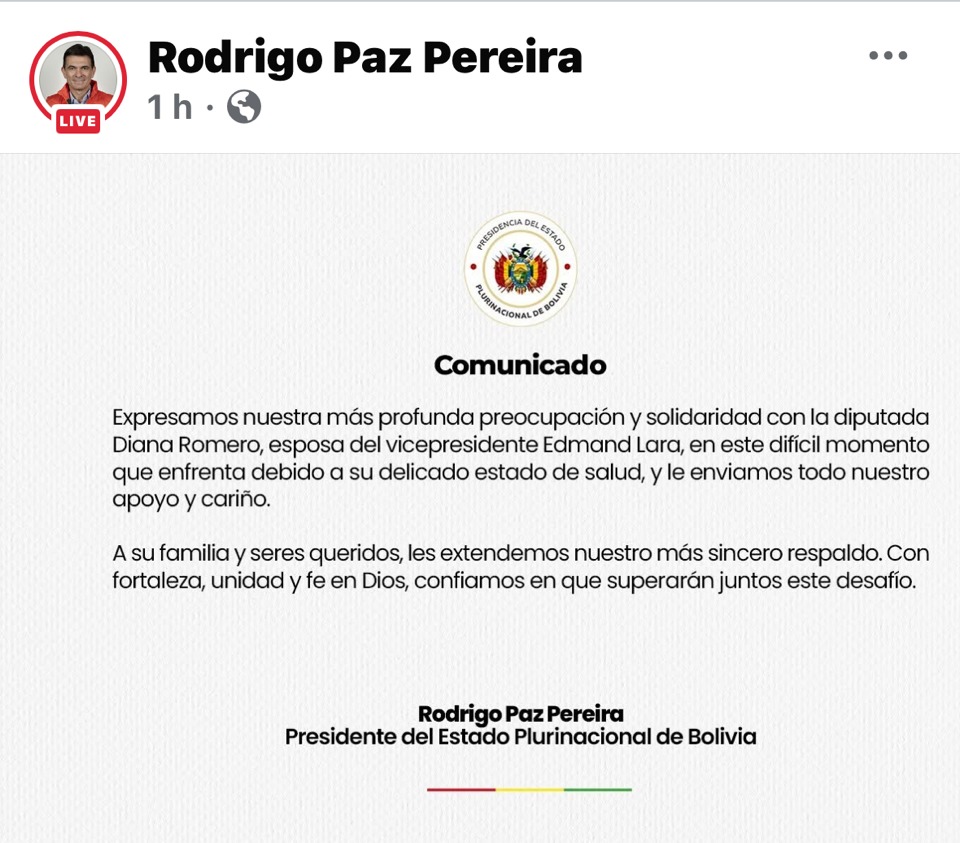 Rodrigo, solidario con la esposa de Lara. “Profunda preocupación y solidaridad”. “Le enviamos todo nuestro apoyo y cariño”.
