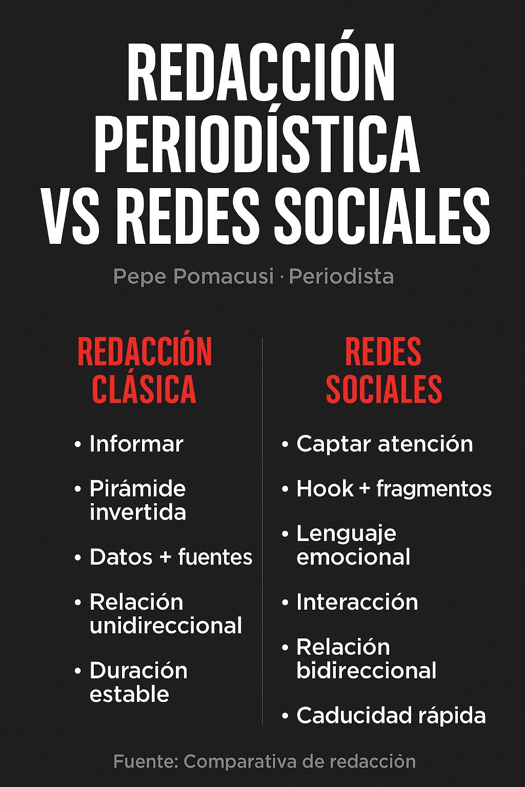 Acá enganchas o mueres. Acá agarras la atención o chau. Acá nada de entrada lenta. Es flechazo directo. Acá nada de pirámide invertida. Acá pones un cuadro solo con texto y los corres. Me arriesgo.