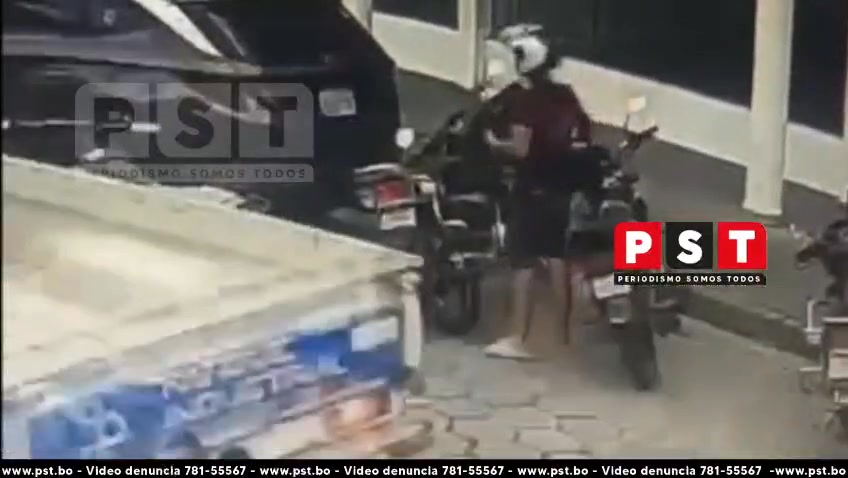 Cámaras de seguridad captaron el momento en que el conductor de una motocicleta, aprovechando el movimiento del centro de la ciudad, sustrae el casco de otra moto estacionada. En el video se observa cómo el motociclista detiene su vehículo junto a varias motocicletas, finge esperar durante algunos segundos y luego toma el casco que, al parecer, era de mayor valor que el que llevaba puesto.
